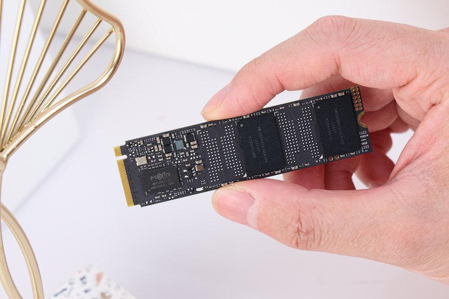 接下来,笔者将撕掉这款SSD正面的散热贴纸,露出PCB正面的一系列芯片设计,细看这款SSD的用料。