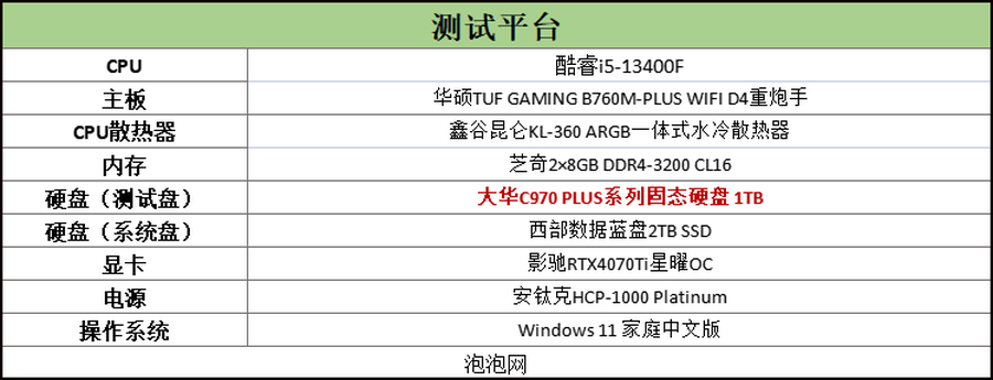 接下来,笔者组建了一套13代酷睿平台,将对大华存储的C970 PLUS系列PCIe4.0固态硬盘 1TB进行上机实测。