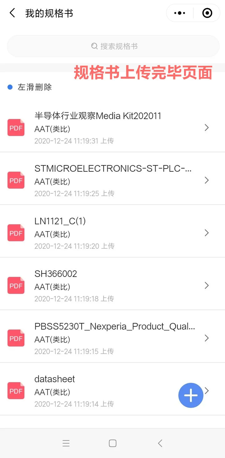◆上传tips:首页头像→用户中心→上传规格书→选择品牌→选择联系人→选中PDF文件→上传完毕。