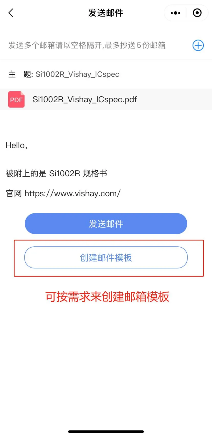 ☆邮件发送 可使用系统模板 :输入邮件直接发送即可;也可以选择创建邮件模板 :可输入姓名、手机等落款信息。
