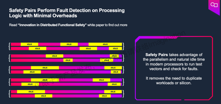 Imagination通过独特的分布式安全机制(DMS),利用空闲时不停发送很小的测试向量,在ASIL标准设定的时间范围内识别故障,实现高等级功能安全。