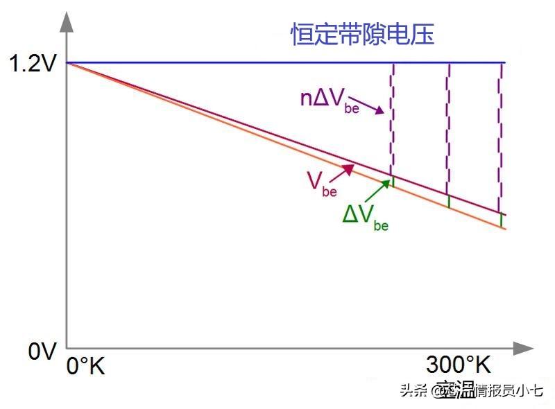 事实证明,如果这些值与硅的带隙电压(约 1.2 伏)相加,则 V be的下降和 ΔV 的增加被抵消。