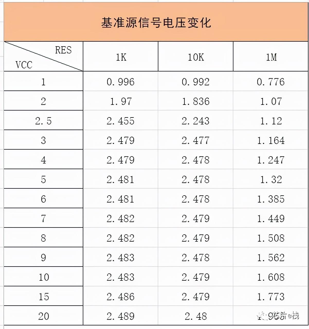 由图可知道,R1的阻值为1K或者10K时,输出的基准源Vref都约为2.5V左右。