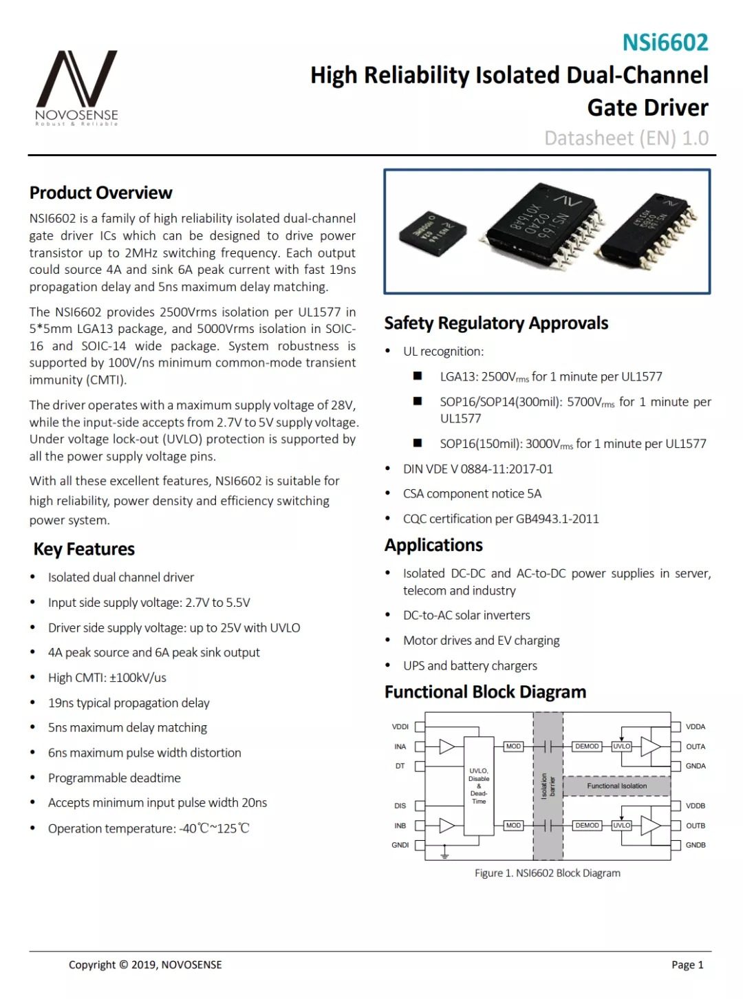 NSi6602支持服务器、通信电源和工业电源的隔离电源应用,支持新能源逆变器应用,支持电机驱动及新能源汽车充电机应用,高集成和高可靠优势大大拓展了产品的应用场景。