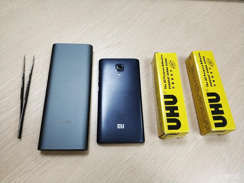 拆机前先把准备工作做好,也看了网上的拆机视频,其需要准备的工具有:镊子、米家wiha精修螺丝刀、UHU胶水、16寸30*40cm相框就足够啦,对于红米1S来说,橇片与吸盘夹就不用啦,这也是基于红米手机1S的特点。