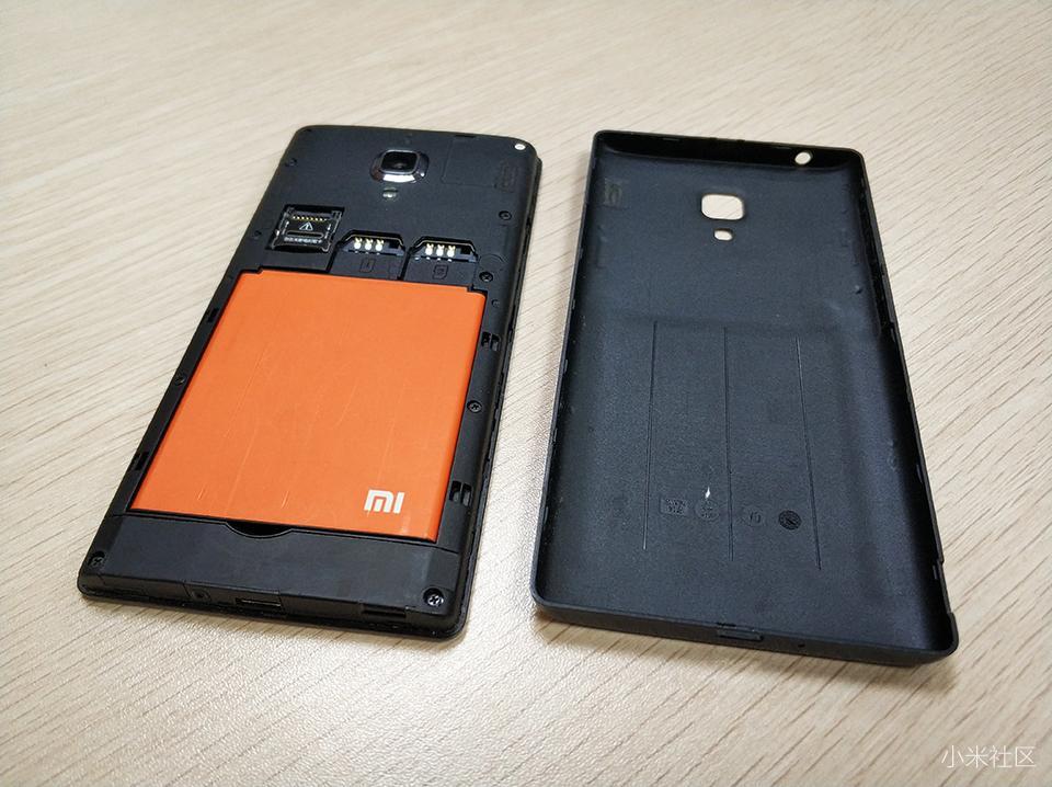 拆机教程正式开始:首先拿掉红米手机1S后盖,对于换手机卡和内存卡的米粉来说,在熟悉不过了。这一步其实很简单。