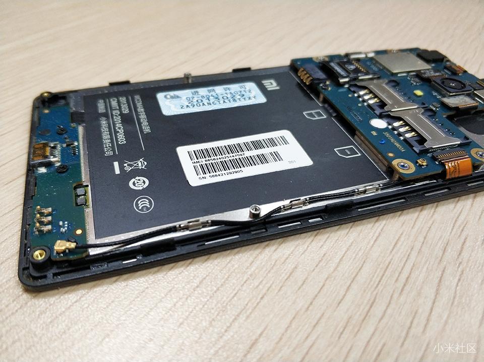 红米手机1S一侧有一条线,其为同轴传输线,用来接收WIFI信号的。