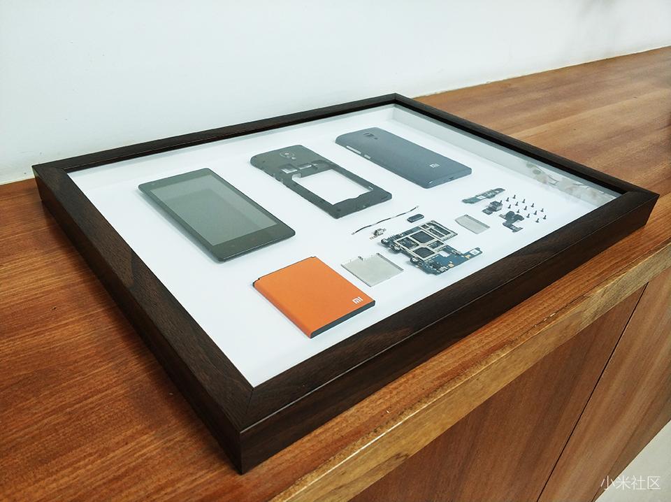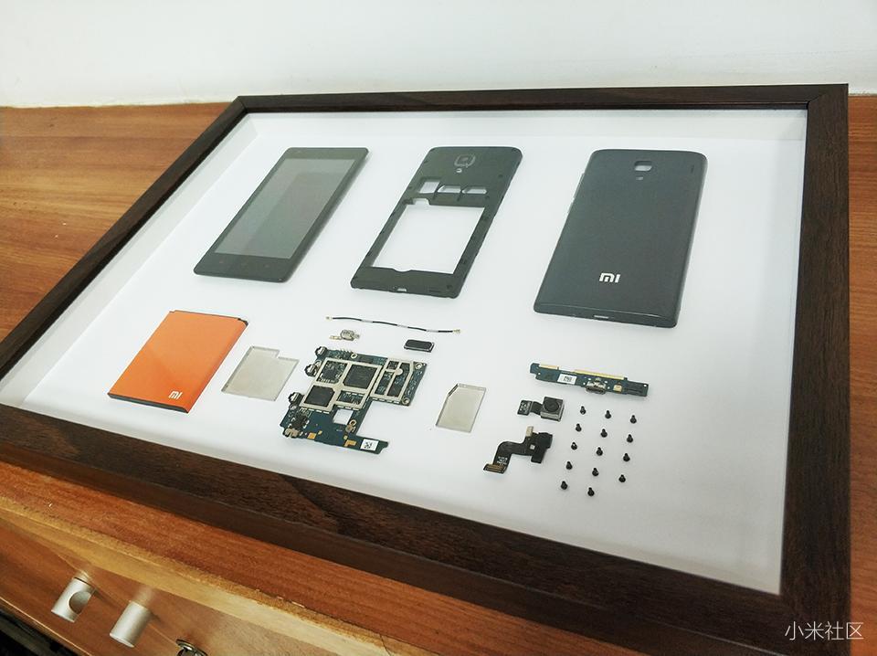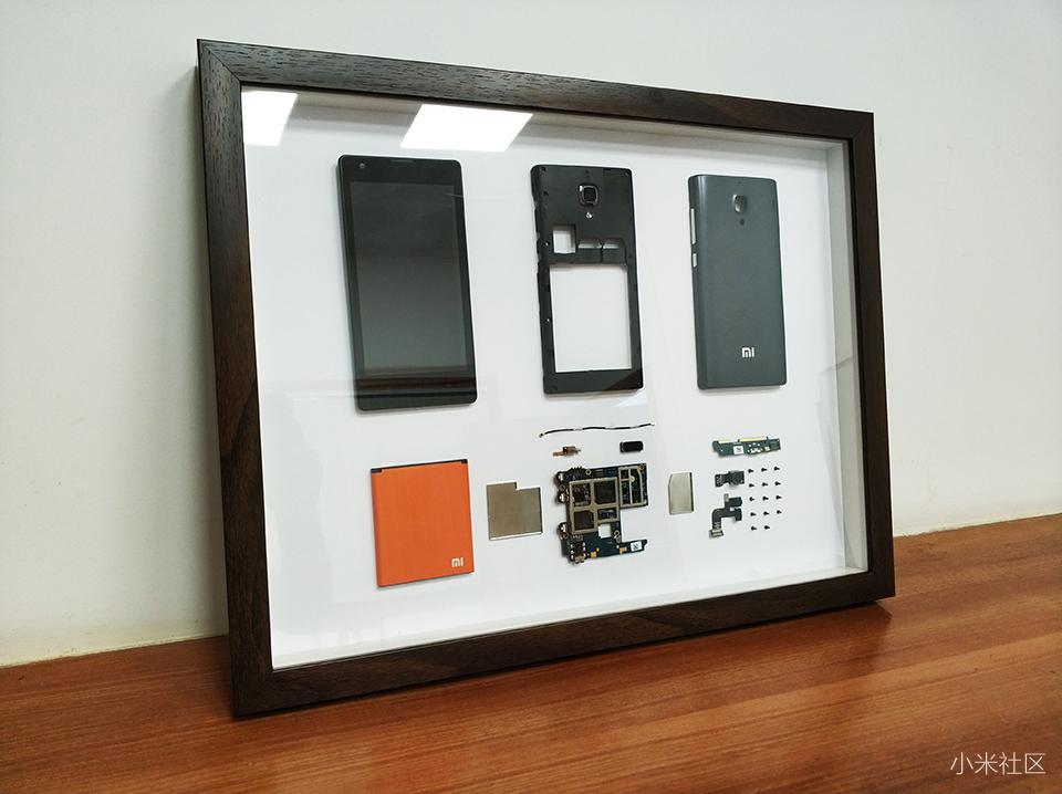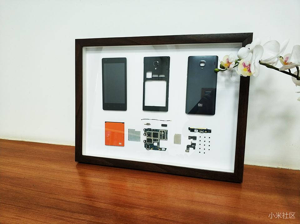 在对红米手机1S的拆解过程中也对各个部件有个浅度的了解,对红米手机的做工还是挺佩服的,对手机中寸土寸金的把握。最重要的是红米手机属于小米手机系列其中一个产品,具有代表性的一台机器,不单单指手机,如果这样装裱之后,会显得格外有价值感与艺术感。