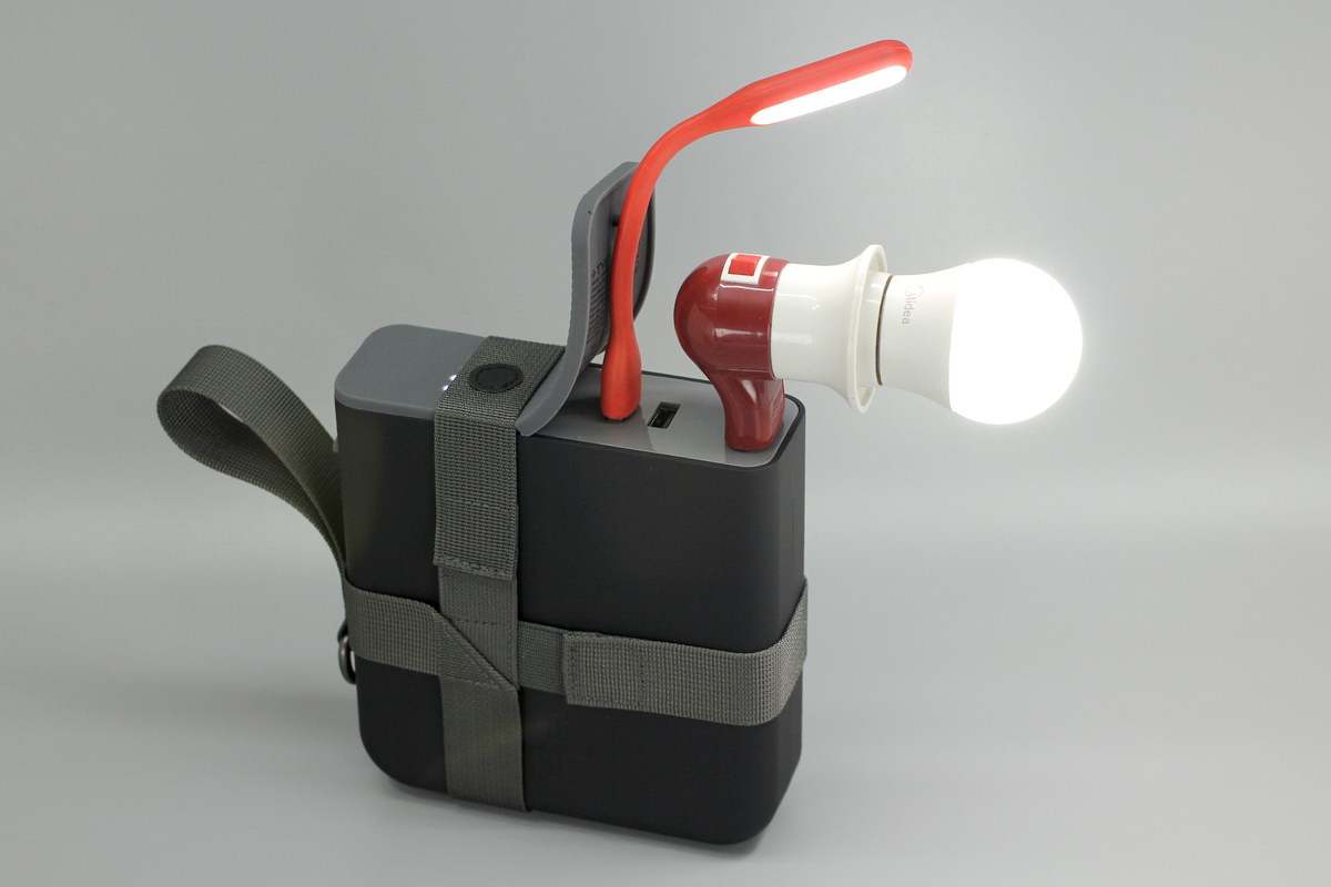 产品使用场景一览,例如可以接照明灯提供光源。