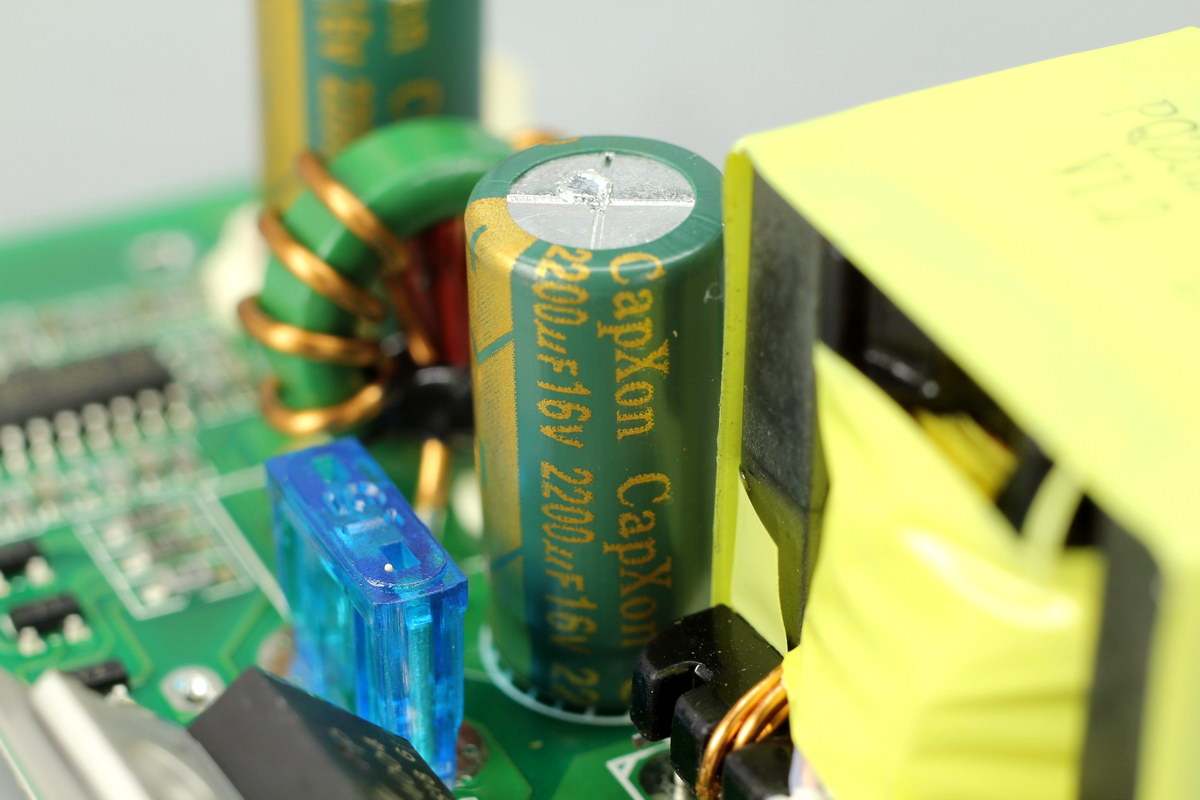 另一颗电容也是来自丰宾,规格一样。两颗电容间还有一颗滤波电感。