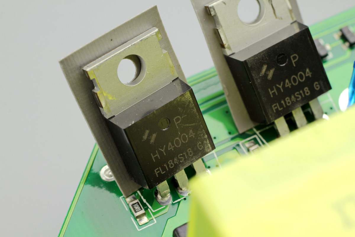 取下逆变器升压开关管的散热片,采用螺丝固定,导热垫绝缘。