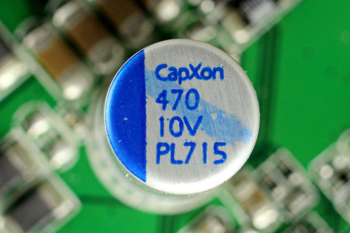 输出滤波固态电容特写,也是来自丰宾,规格为10V 470μF。