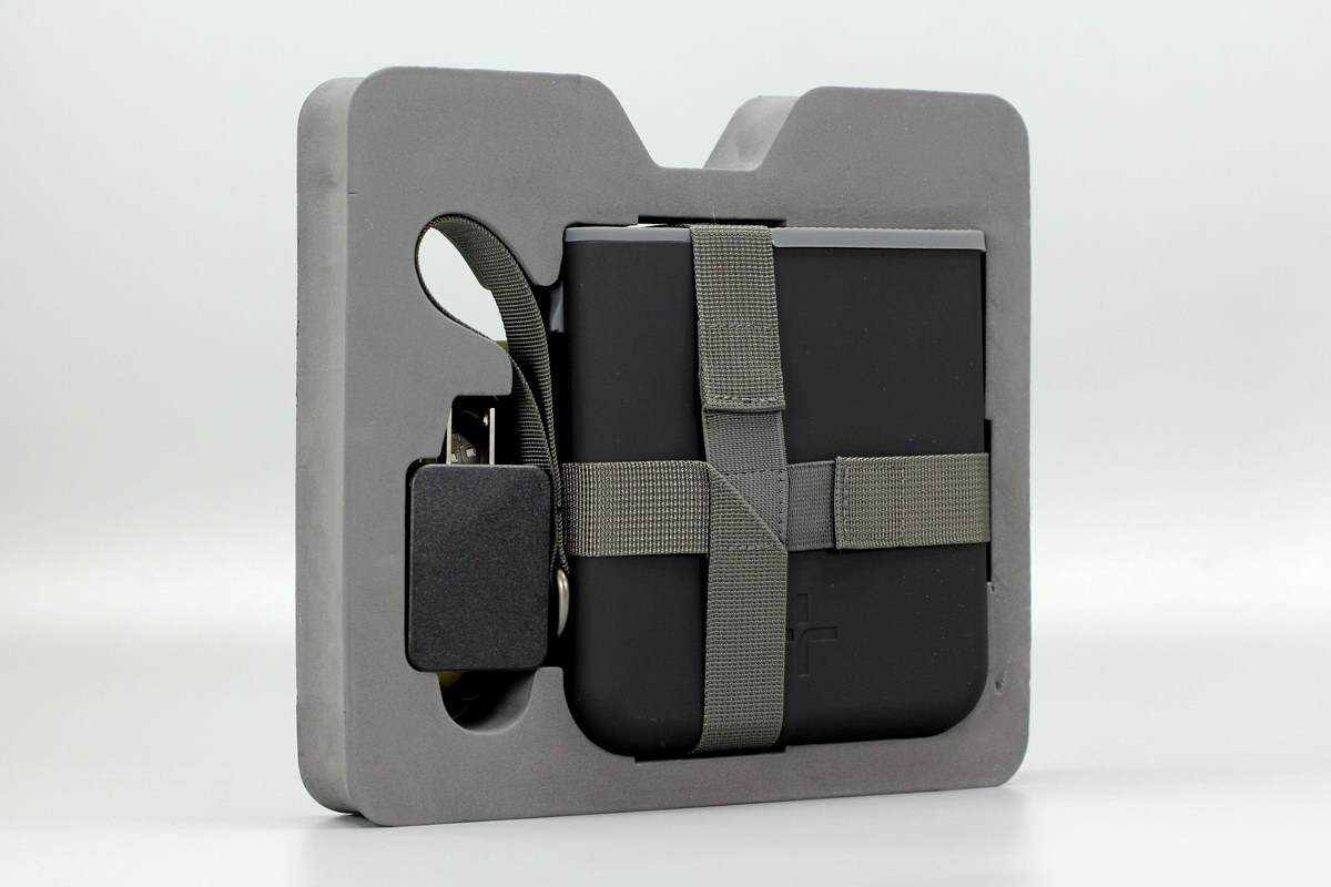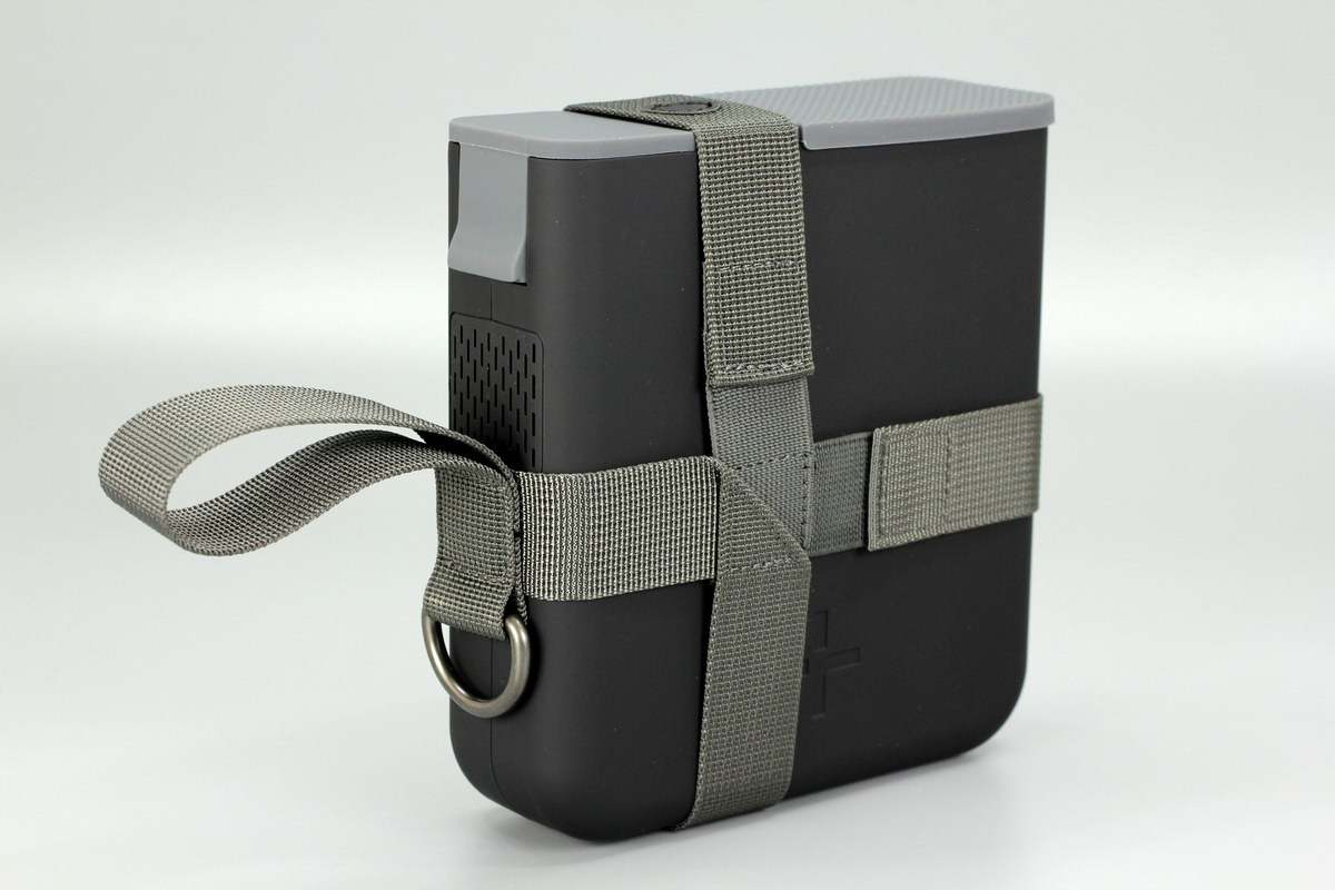 TYLT这款户外电源采用方块造型,机身边角圆润,上端设有灰色胶垫。此外机身横竖套有两个布带,侧边设有提手,通过这种设计对产品进行携带。