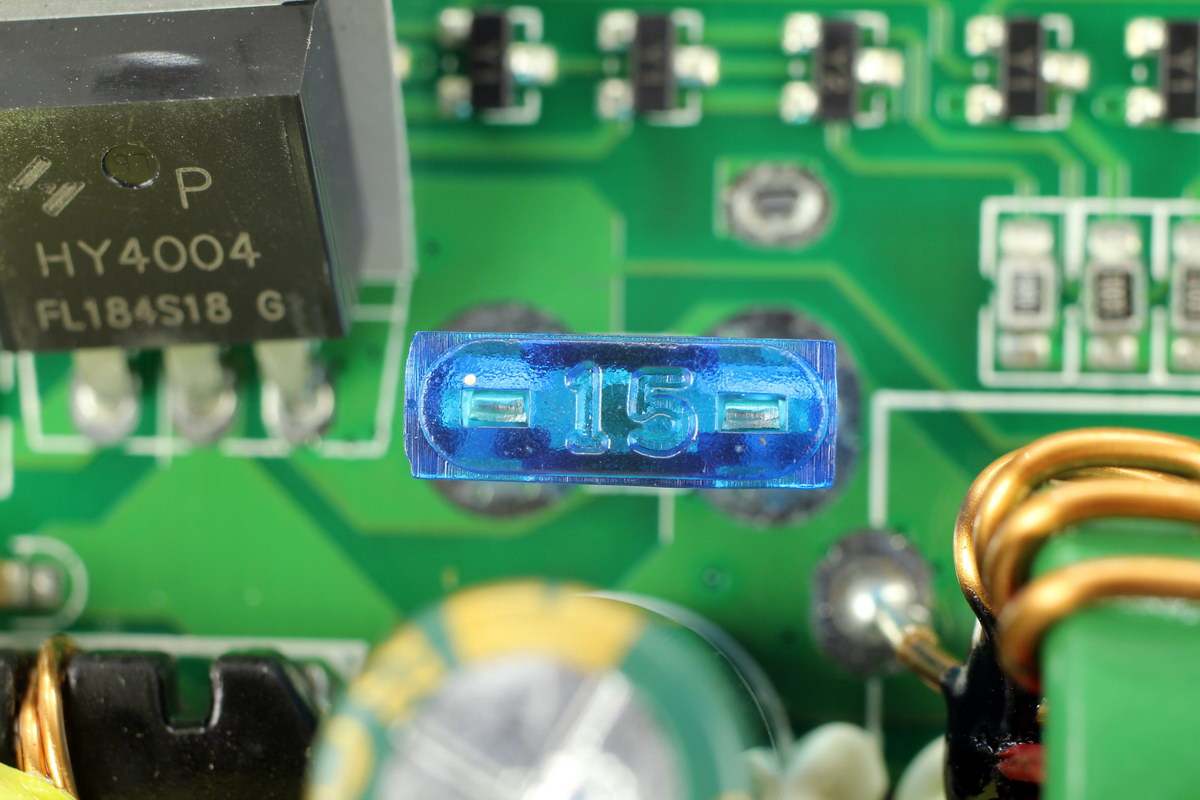 电池端输入保险丝,额定电流15A。