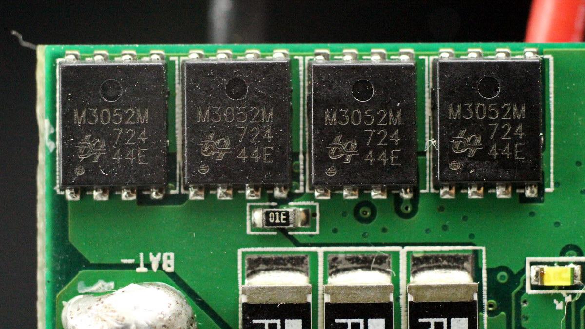 电池保护管特写,采用QM3052M6,两颗并联对向串联。
