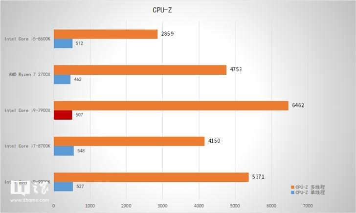 可以看到,在这些理论测试中,Intel Core i9-9900K处理器的多线程性能大约领先Intel Core i7-8700K在18%-20%之间,比Intel Core i9-7900X略低,毕竟一个是10核20线程,一个是8核16线程,当然有很大的因素是IT之家这一次散热器的散热能力有限,通过CPU-Z的观察,我们发现这款处理器在部分测试中会出现降频的现象,尤其是在科学计算中,从满载频率4.7GHz会降低至4.3GHz,这样子就拖累了这款处理器的实际性能表现,因此如果按照频率来算,Intel Core i9-9900K的性能应该是8700K的125%。