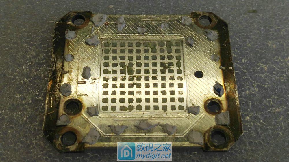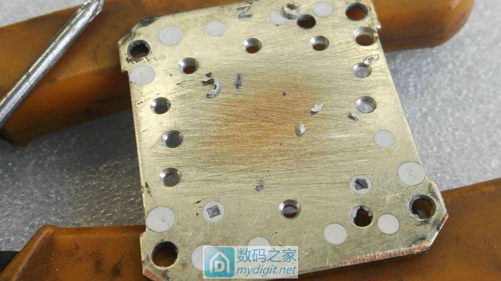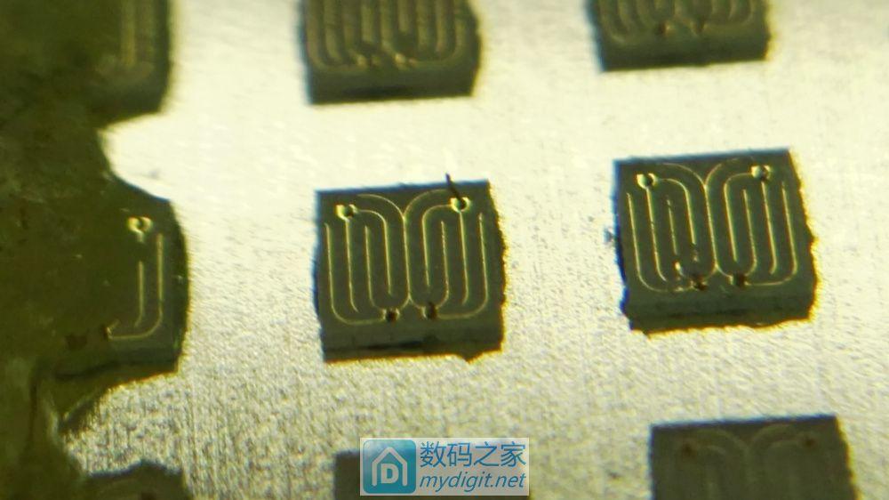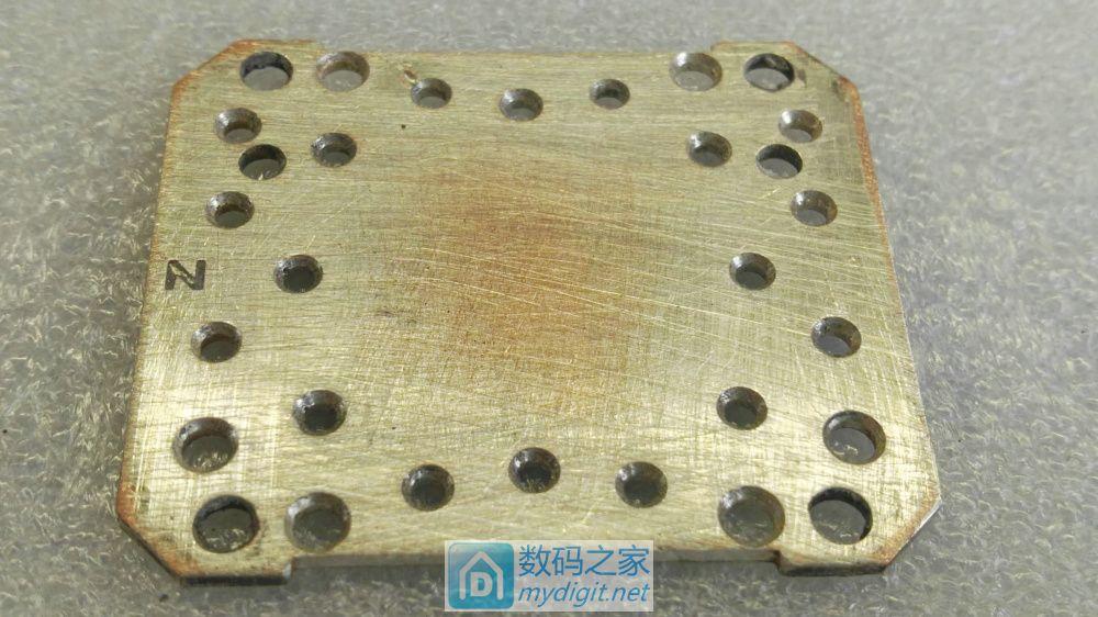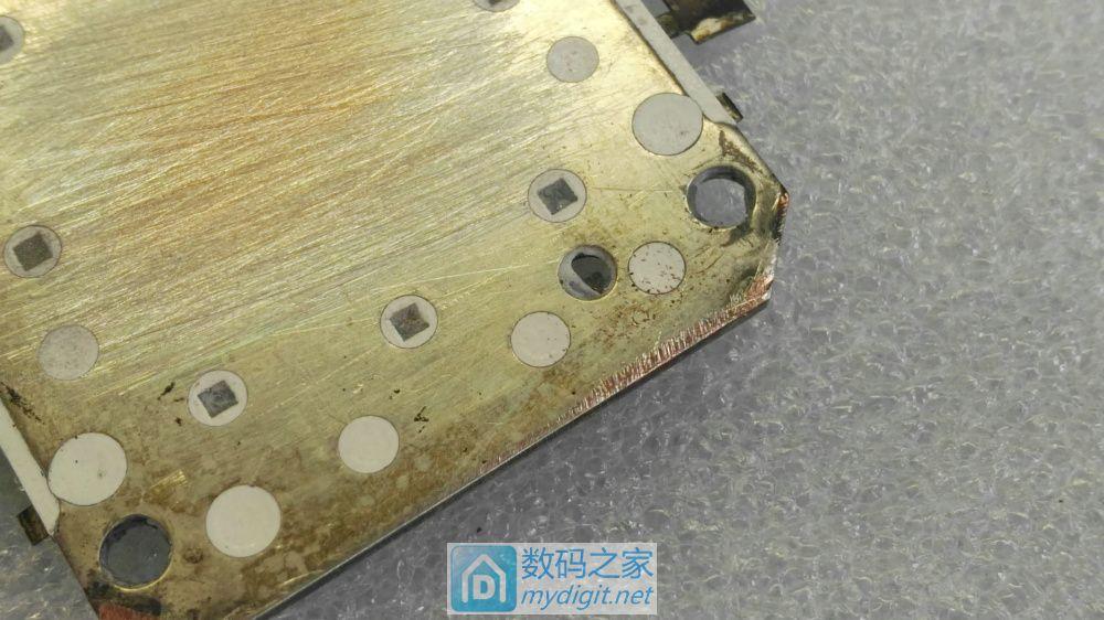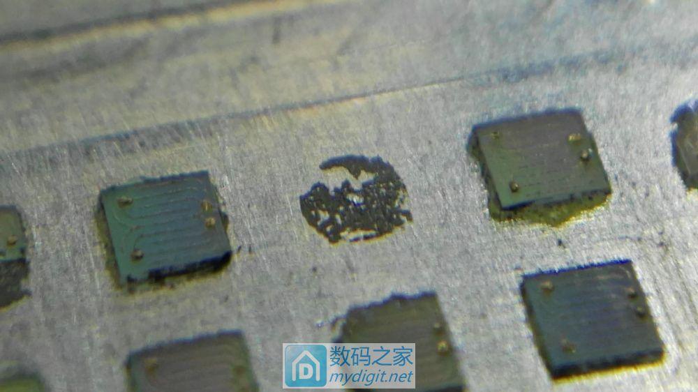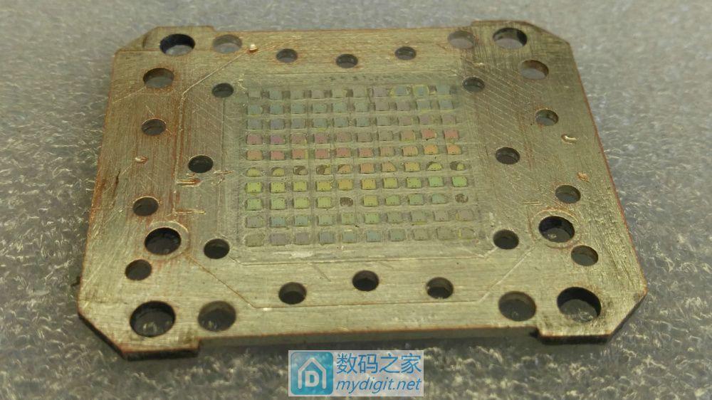 铜基板裸露部分虽然发黑,但里边还是很新哦。斜看芯片,反光也很美耶。