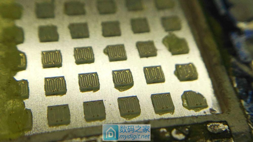 特写一下。这些黑色的点点,就是电极焊点,称之为“一次焊接”------球焊。