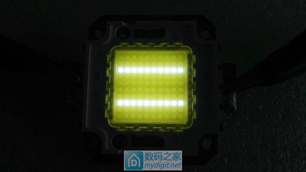 主角登场!基板四角附近有通孔,螺丝将集成灯珠固定到大散热器上。