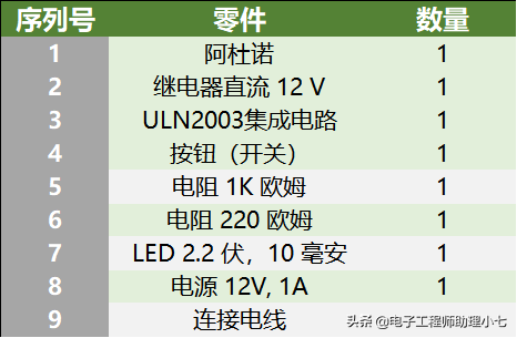 下面的电路是一个基本电路,主要用来评估 ULN2003A IC 的功能。