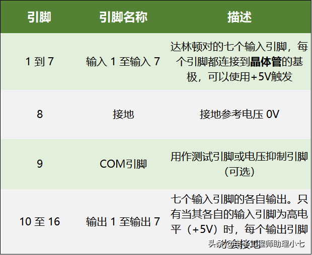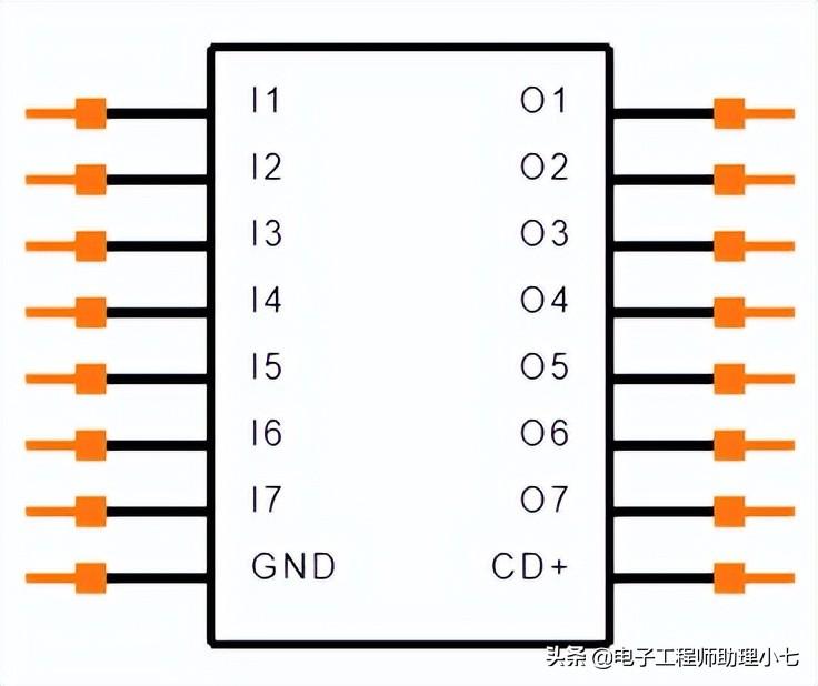 OUTPUT引脚 10 到引脚 16 是输出 1 到输出 7 ,它们是 7 个输入引脚的相应输出 。
