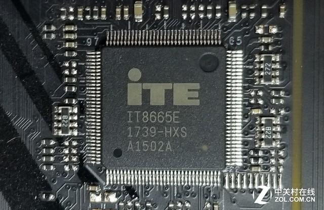 I/O芯片是控制USB、键鼠PS等接口的芯片,高端如上图ITE IT8665E的I/O芯片还有温控调速的能力,I/O芯片除了常见的ITE公司的产品,一些主板会使用Winbond、SMSC公司的芯片。现在Nuvoton芯片整合了I/O的功能,很多主板已经不带这个芯片。