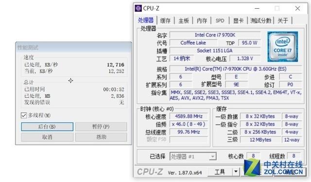 WinRAR是一款老牌压缩软件WinRAR来进行解压测试,这软件配备了专用的性能检测工具,也对多线程处理器提供了支持,i7-9700K得分为12716。