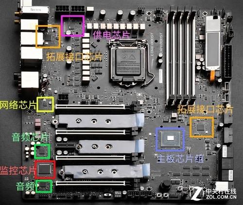 核心:主板芯片组,组位于南桥的散热装甲下面。