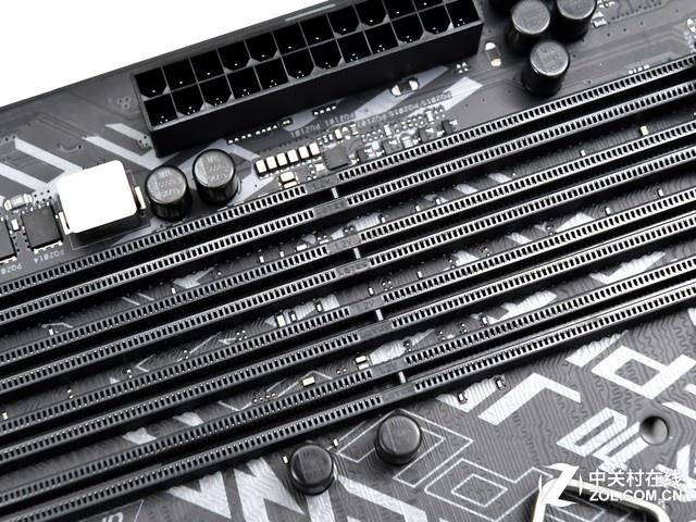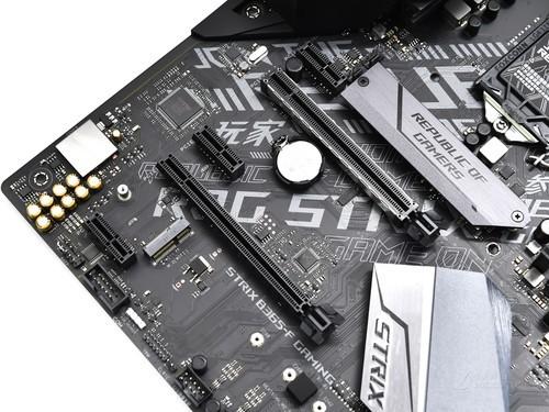 在显卡插槽部分,ROG STRIX B365-F GAMING准备了2个PCI-E X16显卡插槽,上面那根不仅走的是CPU通道,装备了金属散热装甲,下面那根走的是芯片组。