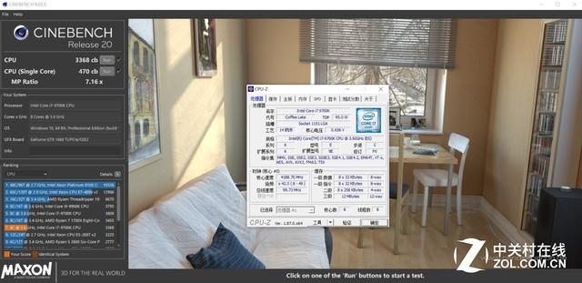 在最新的CINEBENCHR20中,i7-9700K多线程的分是3368,单线程得分是470,发挥正常。