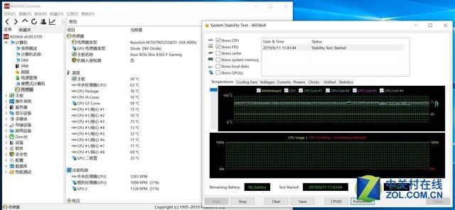 因为B365芯片组不能进行CPU超频,所以最后我们使用AID64对ROG STRIX B365-F GAMING进行拷机的实验,看看这款主板能不能抗住高负载应用的压力。