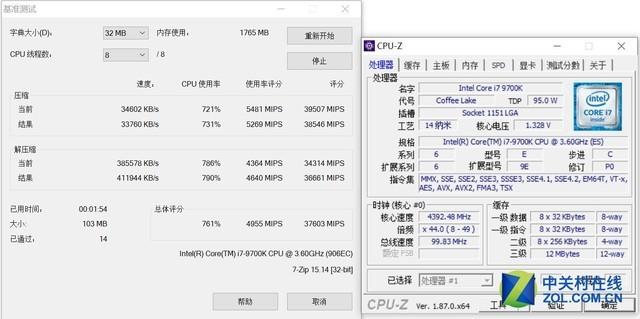 7-ZIP这款软件中也配备了专门的性能测试插件,这款CPU的分数37603表现的不错。