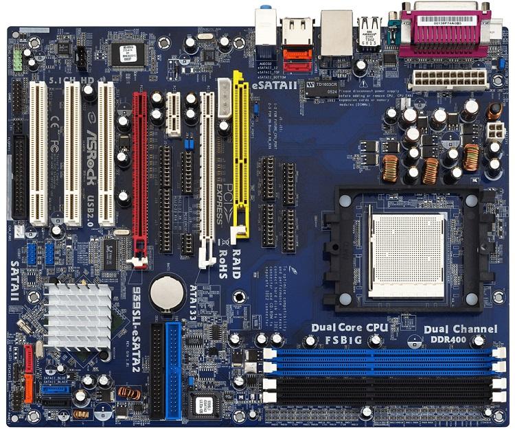 除此之外,北桥芯片还集成了内存控制器和PCI-Express控制器(早期是AGP),所以内存、显卡和CPU的通讯都要通过北桥来完成,同时它还要与南桥芯片连接通讯,可见北桥芯片在主板上的重要性不言而喻。早先的主板通常都是以北桥芯片型号来命名,不同型号的北桥支持的CPU和内存的性能也不一样,例如Intel在奔腾四时期的865和845,前者支持800MHz的FSB频率和双通道DDR400内存,而后者仅支持533MHz的FSB频率和单通道的DDR333内存。除此之外,早期的集成显卡也是整合在北桥芯片中,这在命名方式上也会有所体现,例如Intel同时期的845G和865G,以及后来的G41和G51等,G即是Graphics,内建图形卡的意思。