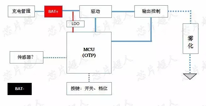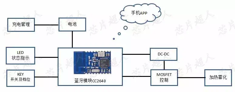根据功能需求,我们推荐电子烟控制板方案为如下框图示意: