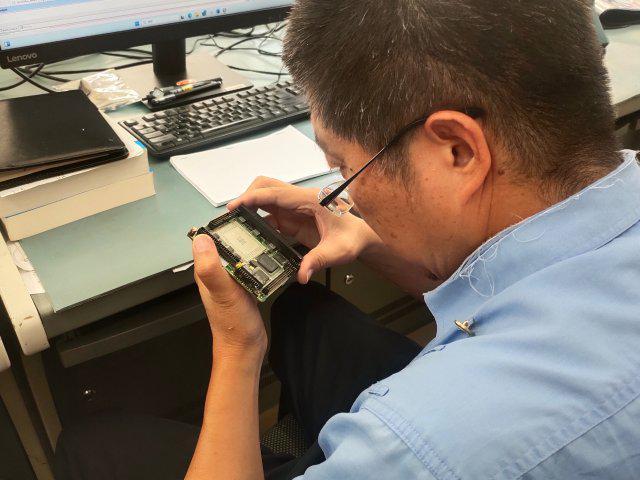 “最难的是修芯片。”王超介绍,一张邮票大小的范围内精准焊接了216个焊脚,焊脚间距如发丝,稍有不慎就会前功尽弃。为提升手底功夫,王超从最基础的锡焊原理学起,搜集废旧板件、查阅资料、购买材料,练习焊接。