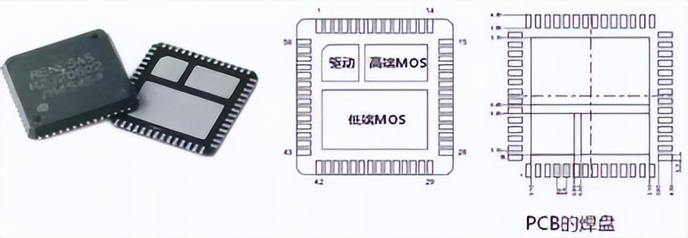 常用于MOS管的SOP派生规格 6、方形扁平式封装(QFP) QFP(Plastic Quad Flat Package)封装的芯片引脚之间距离很小,管脚很细,一般在大规模或超大型集成电路中采用,其引脚数一般在100个以上。 用这种形式封装的芯片必须采用SMT表面安装技术将芯片与主板焊接起来。该封装方式具有四大特点: ①适用于SMD表面安装技术在PCB电路板上安装布线;②适合高频使用;③操作方便,可靠性高;④芯片面积与封装面积之间的比值较小。 与PGA封装方式一样,该封装方式将芯片包裹在塑封体内,无法将芯片工作时产生的热量及时导出,制约了MOSFET性能的提升;而且塑封本身增加了器件尺寸,不符合半导体向轻、薄、短、小方向发展的要求;另外,此类封装方式是基于单颗芯片进行,存在生产效率低、封装成本高的问题。 因此,QFP更适于微处理器/门陈列等数字逻辑LSI电路采用,也适于VTR信号处理、音响信号处理等模拟LSI电路产品封装。 7、四边无引线扁平封装(QFN) QFN(Quad Flat Non-leaded package)封装四边配置有电极接点,由于无引线,贴装表现出面积比QFP小、高度比QFP低的特点;其中陶瓷QFN也称为LCC(Leadless Chip Carriers),采用玻璃环氧树脂印刷基板基材的低成本塑料QFN则称为塑料LCC、PCLC、P-LCC等。 是一种焊盘尺寸小、体积小、以塑料作为密封材料的新兴表面贴装芯片封装技术。 QFN主要用于集成电路封装,MOSFET不会采用。不过因Intel提出整合驱动与MOSFET方案,而推出了采用QFN-56封装(“56”指芯片背面有56个连接Pin)的DrMOS。 需要说明的是,QFN封装与超薄小外形封装(TSSOP)具有相同的外引线配置,而其尺寸却比TSSOP的小62%。根据QFN建模数据,其热性能比TSSOP封装提高了55%,电性能(电感和电容)比TSSOP封装分别提高了60%和30%。最大的缺点则是返修难度高。