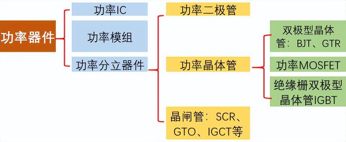 1.1 功率半导体器件在工业 、消费 、军事等领域都有着广泛应用 ,具有很高的战略地位,下面我们从一张图看功率器件的全貌: