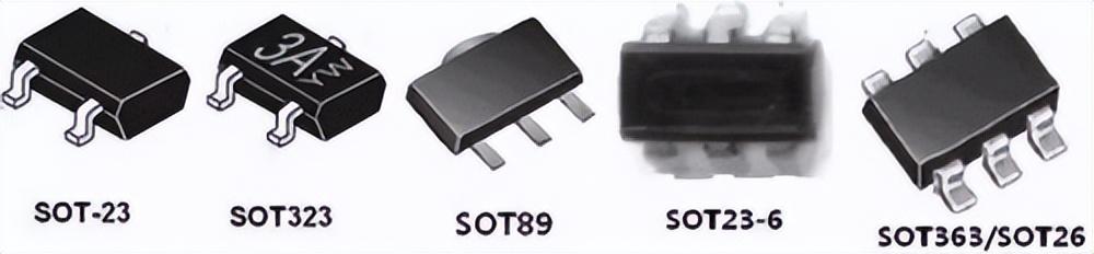 PGA封装样式 其芯片基板多数为陶瓷材质,也有部分采用特制的塑料树脂来做基板,在工艺上,引脚中心距通常为2.54mm,引脚数从64到447不等。 这种封装的特点是,封装面积(体积)越小,能够承受的功耗(性能)就越低,反之则越高。这种封装形式芯片在早期比较多见,且多用于CPU等大功耗产品的封装,如英特尔的80486、Pentium均采用此封装样式;不大为MOS管厂家所采纳。 4、小外形晶体管封装(SOT) SOT(Small Out-Line Transistor)是贴片型小功率晶体管封装,主要有SOT23、SOT89、SOT143、SOT25(即SOT23-5)等,又衍生出SOT323、SOT363/SOT26(即SOT23-6)等类型,体积比TO封装小。