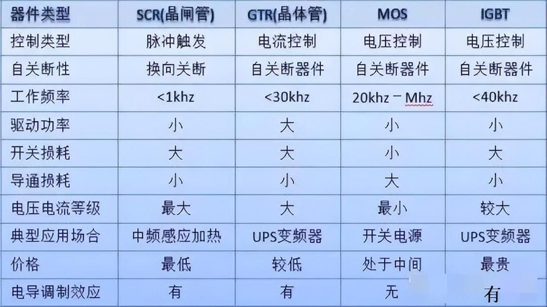 1.3 不同功率半导体器件 ,其承受电压 、电流容量 、阻抗能力 、体积大小等特性也会不同 ,实际使用中 , 需要根据不同领域 、不同需求来选用合适的器件。