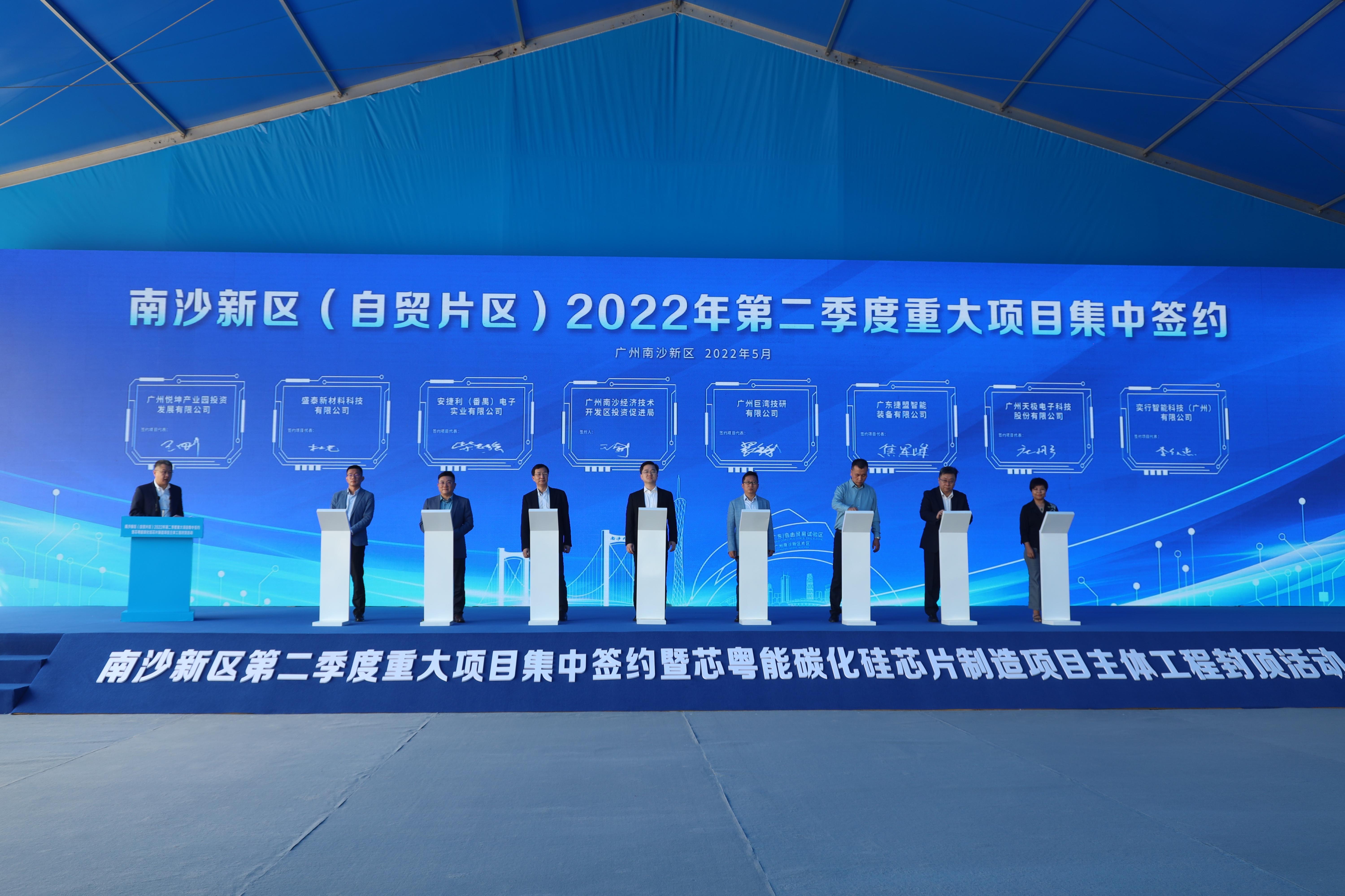 5月17日,广州南沙举行第二季度重大项目集中签约暨芯粤能碳化硅芯片制造项目主体工程封顶活动。本次活动上,广东“强芯工程”重大项目芯粤能有限公司实现主体封顶。活动当天,9个半导体产业相关项目进行了现场签约,涉及总投资300亿元,达产年产值630亿元。