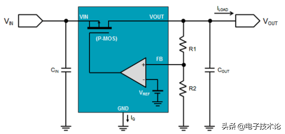 我们都知道LDO稳压芯片搭好电路后输出就是我们想要的值且稳定不变,那么大家想过没,为什么输出电压稳定?这里还是通过一个典型得LDO原理框图来分析。
