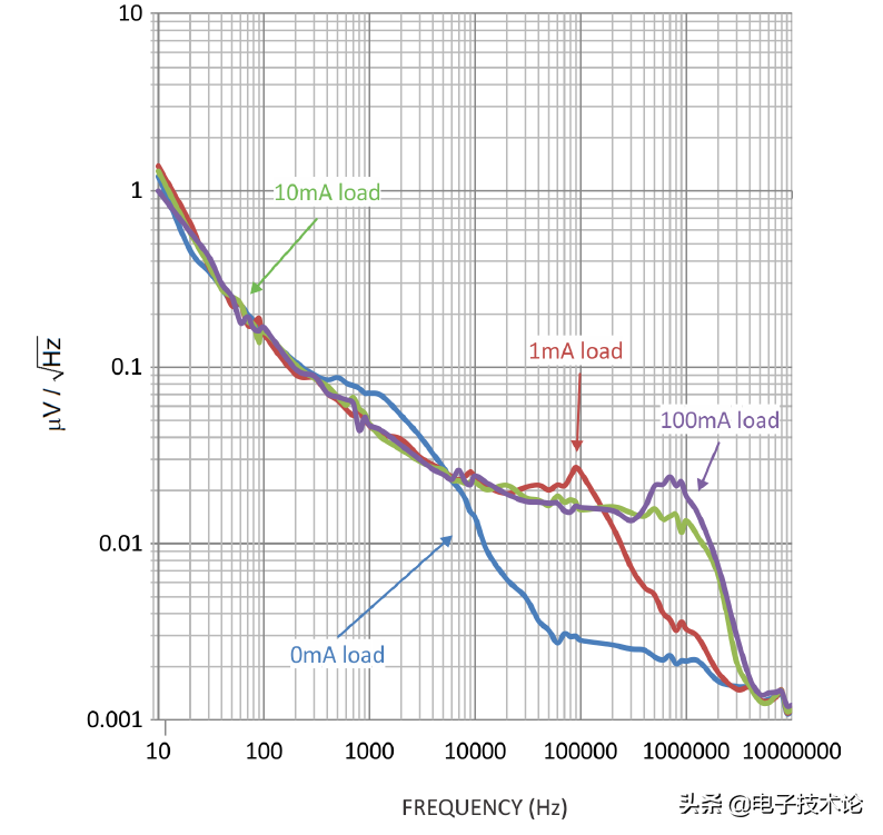 不同于PSRR,噪声是指LDO自身产生的噪声信号,低噪声的LDO稳压芯片可以很好的降低LDO产生的额外噪声,输出的电压更纯净,噪声一般计算出的值是有效值(rms),也可以用peak to peak 来分析。