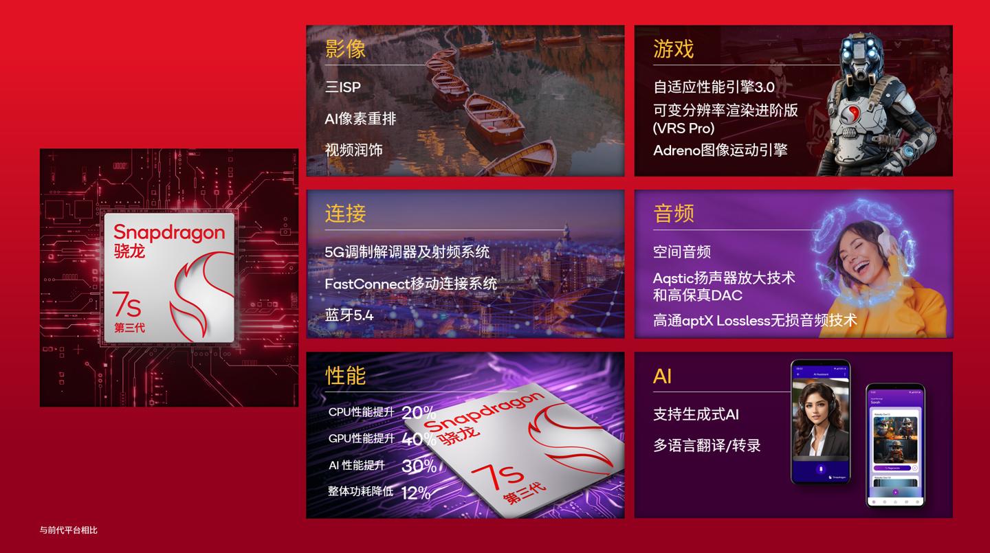 高通骁龙 7s Gen3 处理器发布于今年 8 月,代号 SM7635,定位低于第三代骁龙 7+,基于 4nm 工艺打造,8 核 CPU,可提供终端侧生成式 AI 功能,支持包括 Baichuan-7B 和 10 亿参数的 Llama 2 等大语言模型(LLM)。