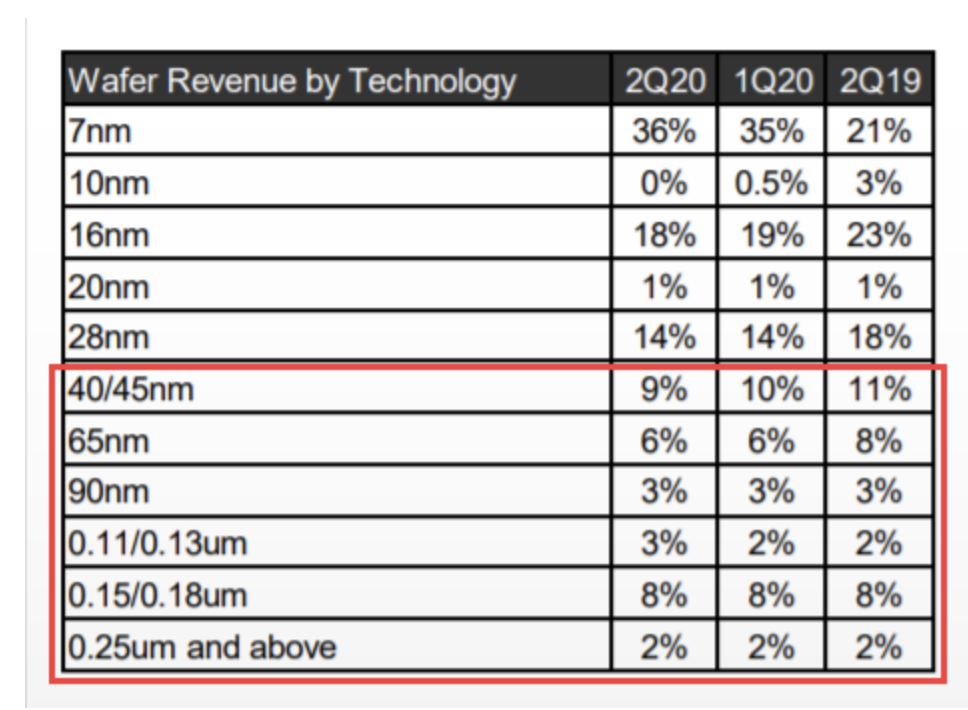 尽管中芯国际的14nm工艺从去年四季度开始量产,但还处于产能爬坡和进一步提高良率的阶段,收入占比还很小,公司收入更多由成熟制程(28nm以上)贡献。