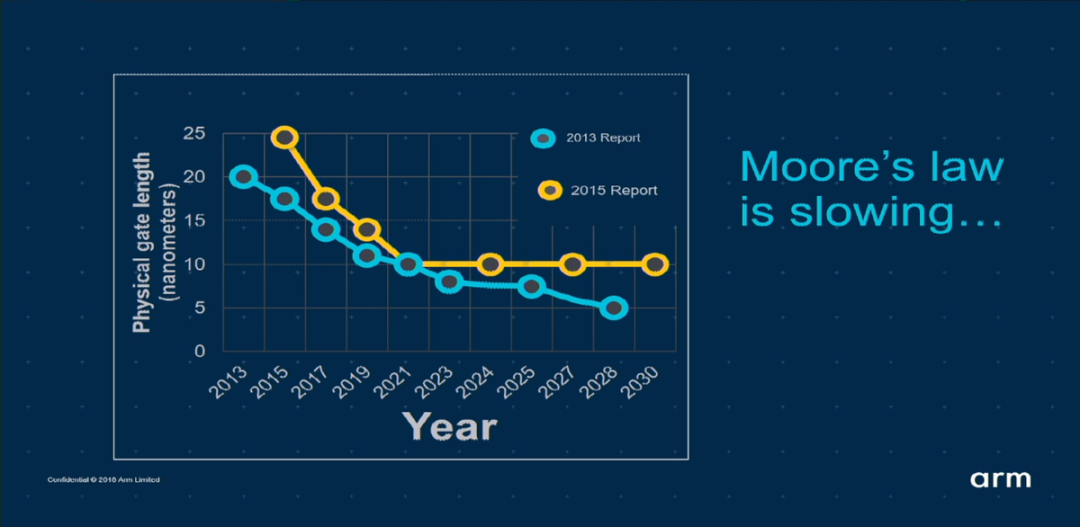 长期以来,芯片制程微缩技术一直驱动着摩尔定律的延续。从1987年的1um制程到2015年的14nm制程,芯片制程迭代速度一直遵循摩尔定律的规律,即芯片上可以容纳的晶体管数目在大约每经过18个月到24个月便会增加一倍。但2015年以后,芯片制程的发展速度进入了瓶颈期,7nm、5nm制程的芯片量产进度均落后于预期。全球领先的晶圆代工厂台积电3nm制程芯片量产遇阻,2nm制程芯片的量产更是排到了2024年后,芯片制程工艺已接近物理尺寸的极限1nm,芯片产业迈入了后摩尔时代。