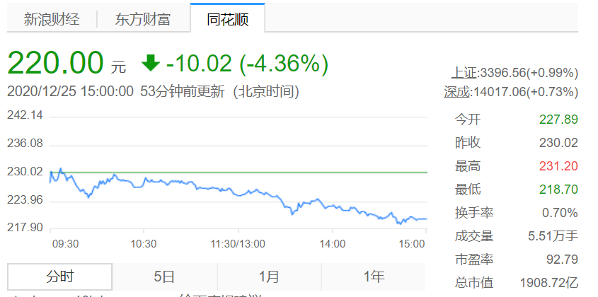韦尔股份的股价上涨,更是惊人 。2017年5月4日,韦尔股份上市时股价7元,今年12月25日收盘,韦尔股份的股价是220元,总市值1908.72亿,三年多股价涨了30多倍。