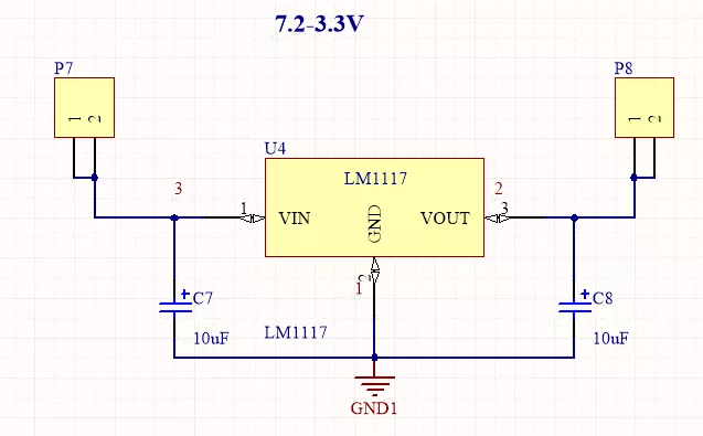 7.2v转3.3v用lm1117效果挺好的,电路如下: