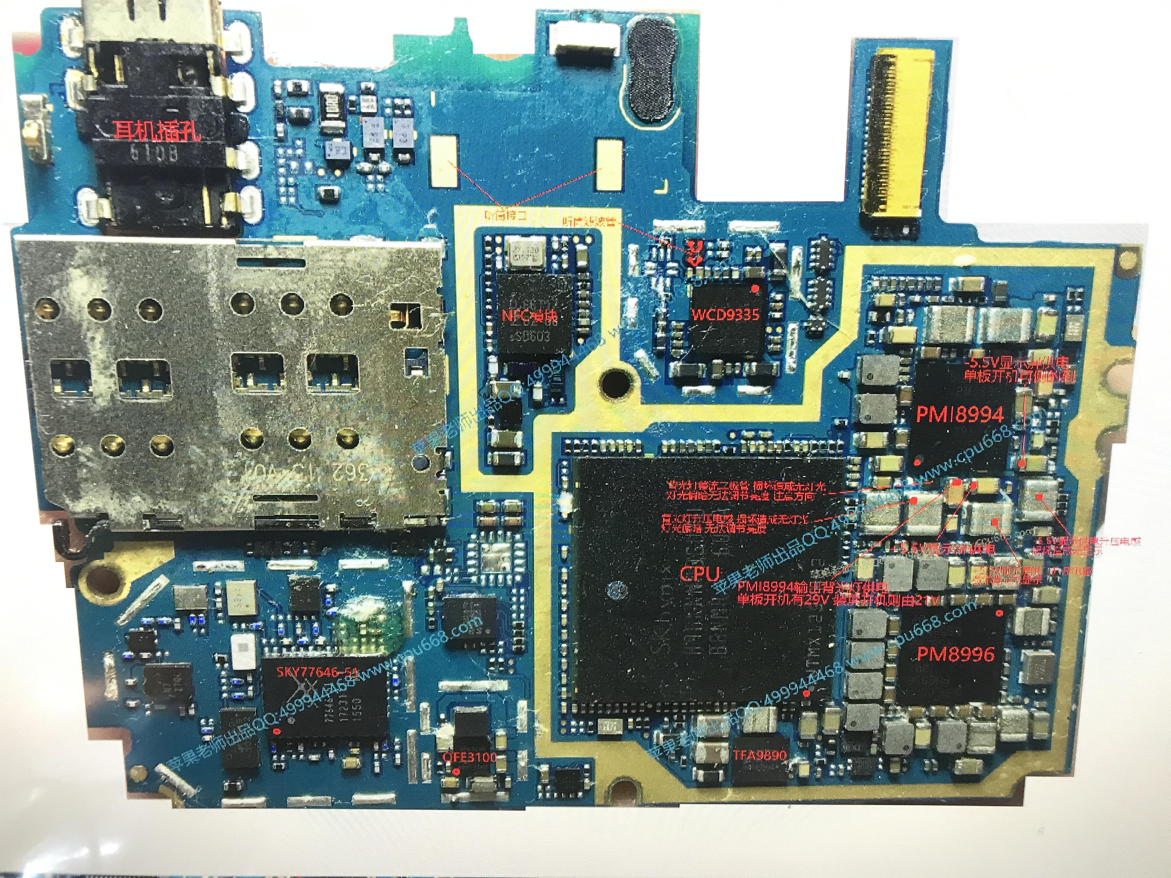 今天接修一台小米5不开机手机,客户反映为正常使用不开机。接着拆机检测主板,去掉电池加外接电源漏电300毫安,正常机器是不漏电的。再次询问客户,是晚上插着充电器看手机睡着了,第二天早上起来就黑屏不开机,插充电器没反应。继续查找正极供电芯片,正常情况下漏电分两种情况 一:加电漏电严重500毫安以上能直接用手感触到发热损坏芯片。快速明确故障点。二:加电漏电50到300毫安之间这种芯片也会发热只是不太严重 。查找稍微有一点点难度。