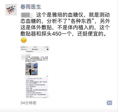 从现有的信息来看,所谓皮下植入芯片的事,应该是这位业外人士的理解和实际情况出现了一定的偏差。据春雨医生微信号介绍,他购买的应该并不是他自己所说的"能检测多种参数"的芯片,而是2017年刚刚被美国FDA批准上市的雅培瞬感扫描式血糖仪 。