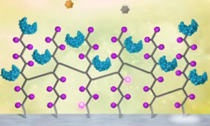 "有线酶技术"的原理,葡萄糖分子与氧化酶接触后,产生的电信号可由聚合物链式传到至电极上